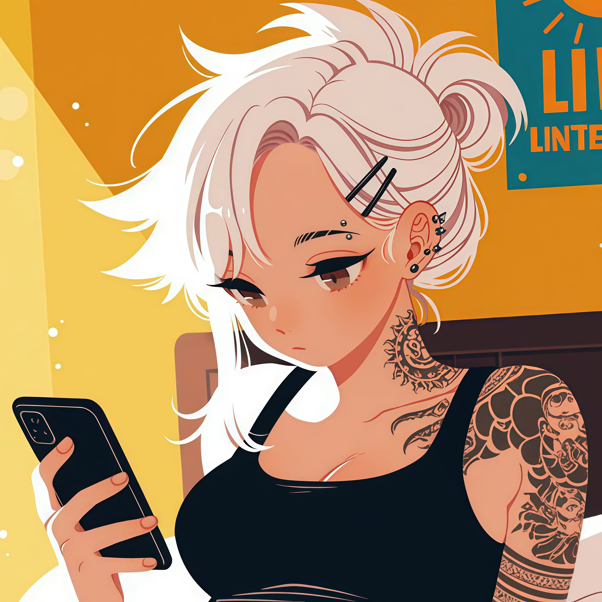 [feefal], (emily kim), (lineless:1.7), kamatama rom, hatching \(texture\), yellow theme