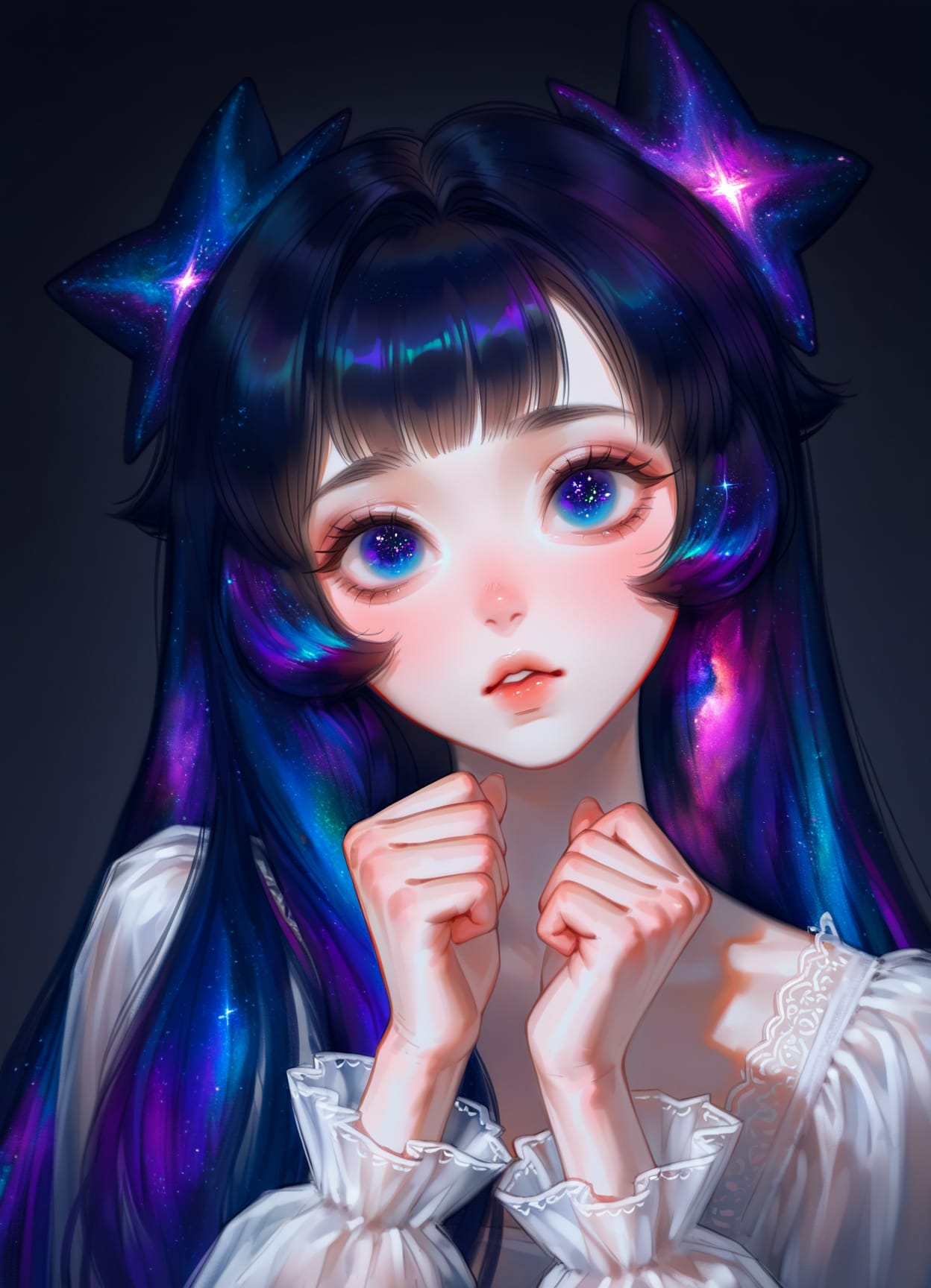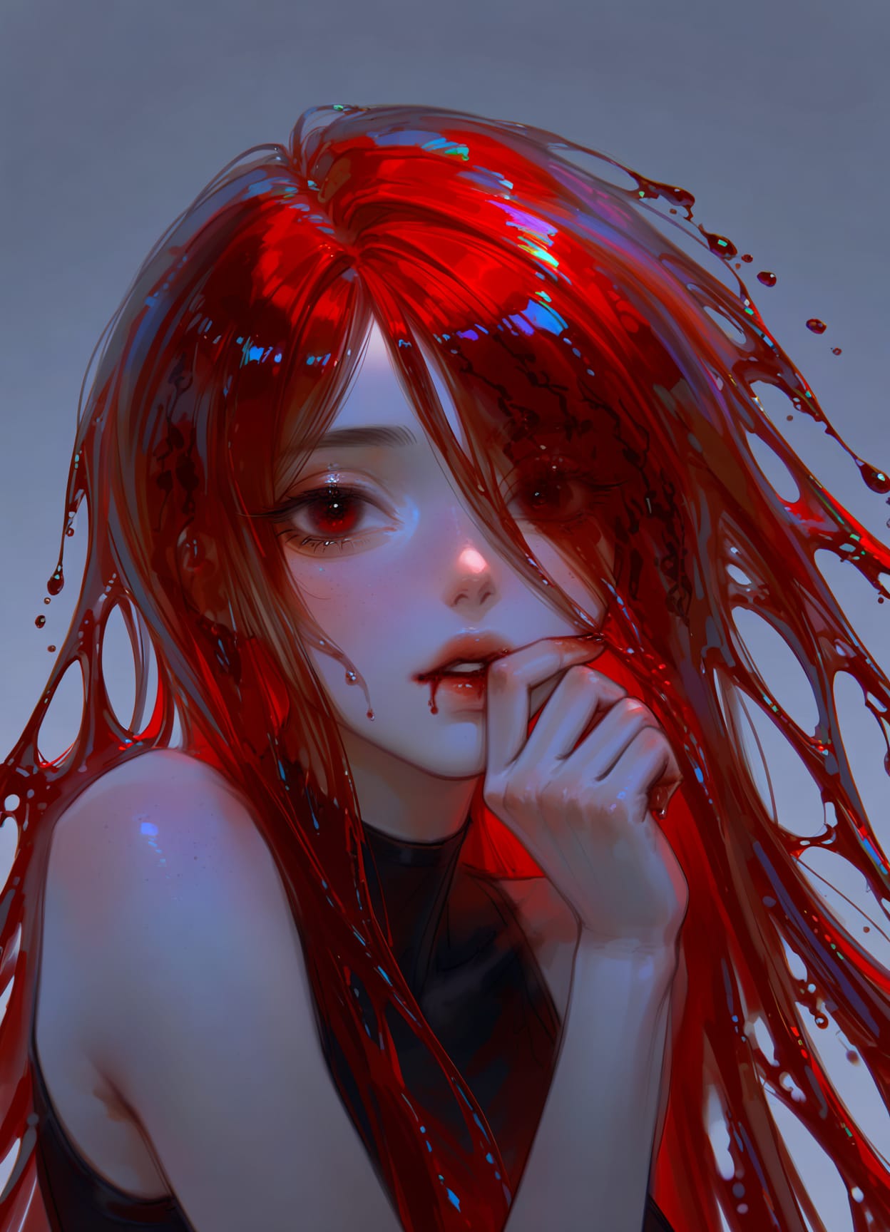 cloud hair :1.8chocolate hair :1.8 + liquid haircrystal hair :1.8, crystal shaped hairenergy hair:1.9, yellow lightning hairfeather hair :1.9, feather :2fiery hair :1.8food-themed hair :1.9, grape instead hair :2glowing hair: 2, pink hair, purple hairliquid hair :1.8, long bangsmechanical hair :2plant hair :2prehensile hair :2, hair holding tea cup, hair holding cookie, multitasking, motion linestentacle hair :2blood hair :2, liquid hair :1.8sand hair :2, dissolving hair :1.7snake hair :1.8bubble hair :1.9, bubble instead hair :2starry hair :2, galaxy hair :1.9, nebula haircoral hair :1.8, coral instead hair :2lava hair :2