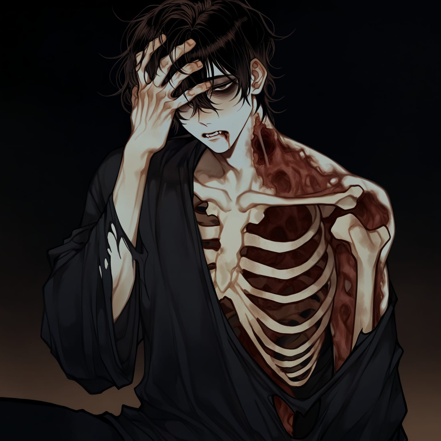 jack o’lantern head, ragged clothes, glowing carved face, twisted vines as armskuroume,bombyoon,shirone (coxo ii), 1man, solo, decayed skin, torn clothes, lifeless eyes, exposed bones, rotting flesh, open wounds1man, solo, werewolf, male wolf, thick fur, (anthropomorphic wolf), gray fur1man, solo, decayed skin, torn clothes, lifeless eyes, exposed bones, rotting flesh, open wounds1girl, solo, transparent body, glowing eyes, long hair, flowing form, ethereal glow, ghostly face1man, solo, blue skin, glowing eyes, muscular torso, smoky lower body, golden jewelry, mystical patterns1man, solo, gaunt body, deer skull head, glowing eyes, long claws, torn flesh, frost-covered fur