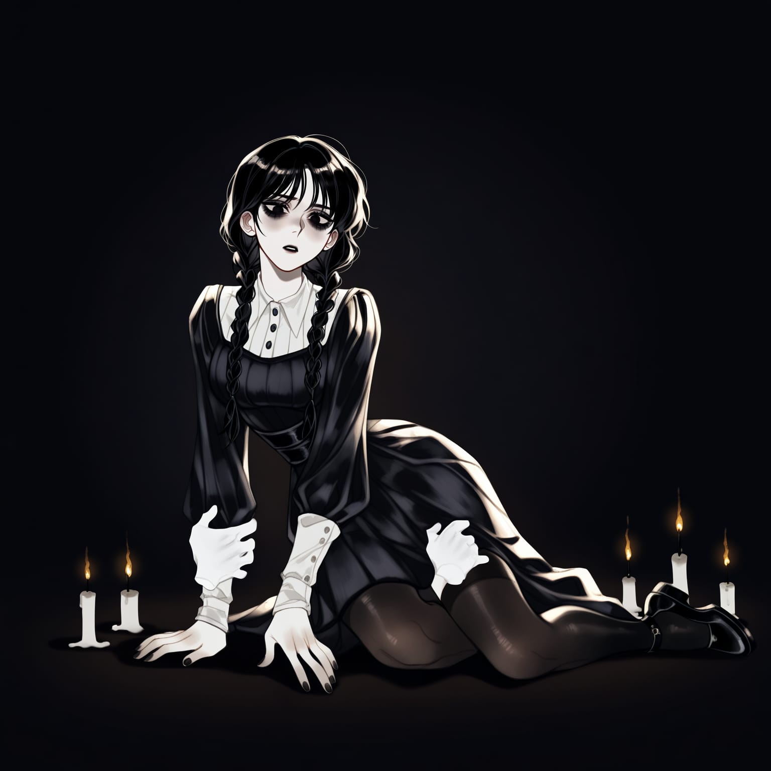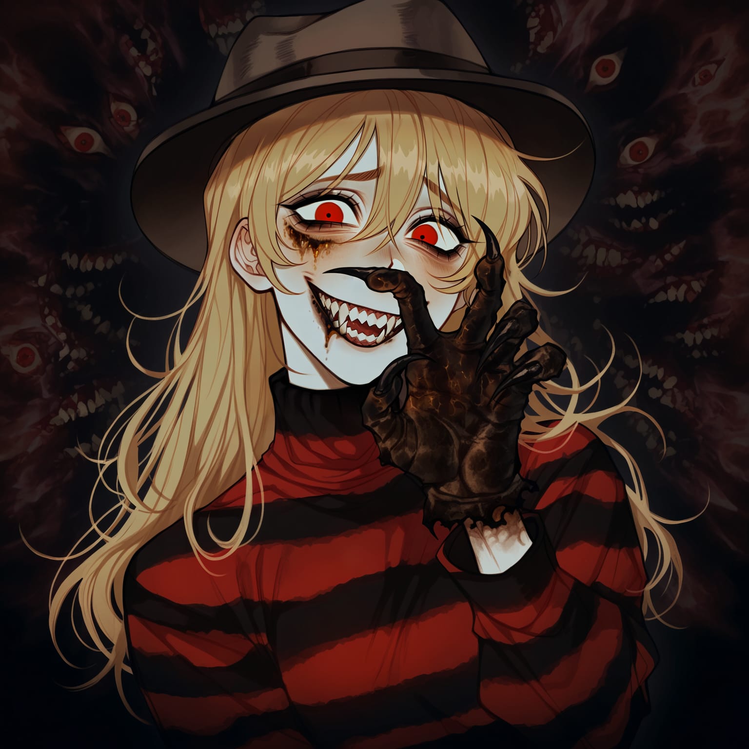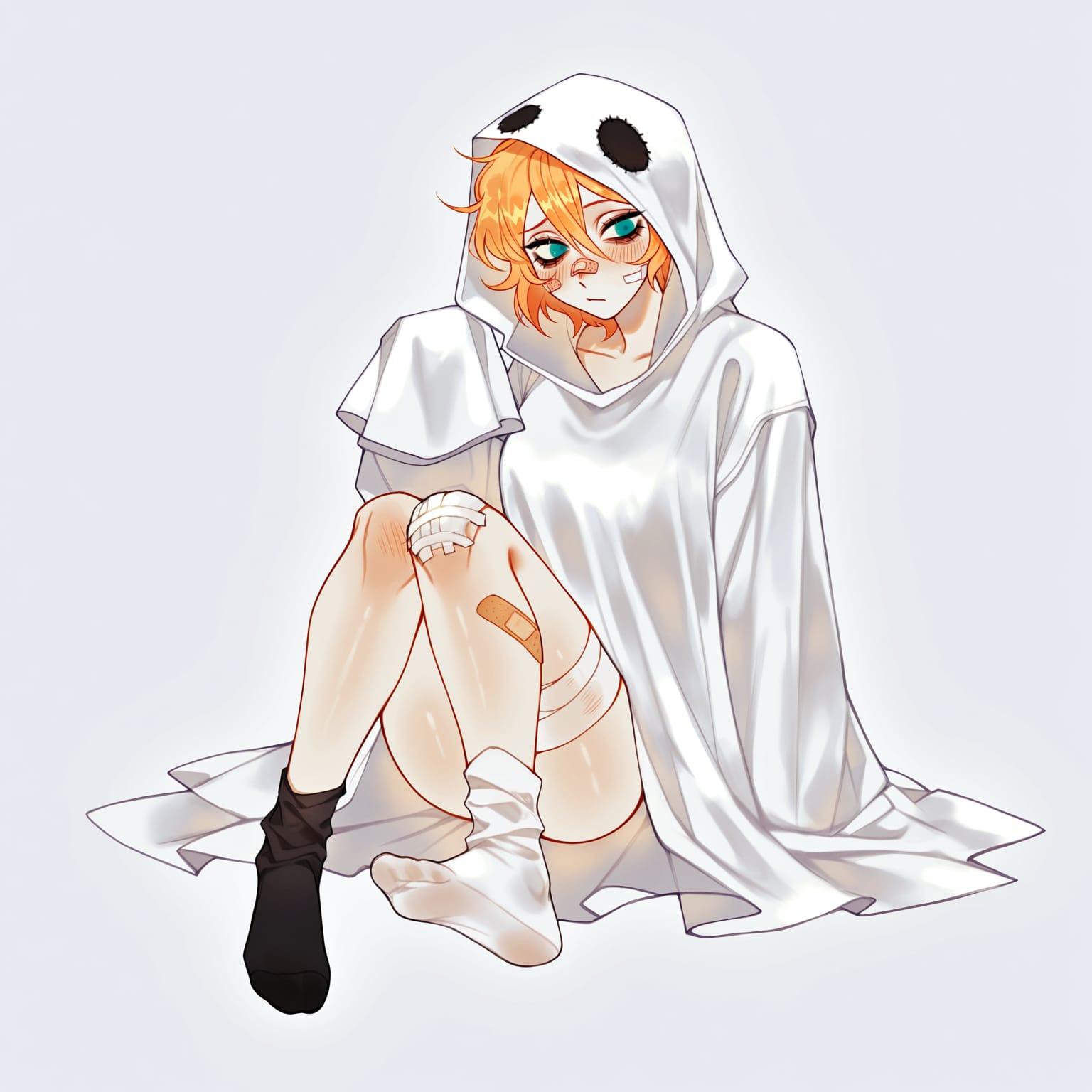 Гостфейс: ghost mask, black hooded robe, kitchen knifeФредди Крюгер: dark red and olive green striped wool sweater, brown fedora hat, dark brown leather glove with metal claws, black pants, heavy black bootsДжейсон Вурхиз: dirty beige hockey mask with red markings, torn dark green work jacket, gray undershirt, brown cargo pants, black leather gloves, muddy black boots, rusty macheteНевеста Чакки: short platinum blonde hair, white satin wedding dress with lace, black cropped leather jacket, silver necklace, black boots, red lipstickDeath in Prada: black silk dress with deep slit, long sleeves, silver jewelry, high black stiletto heels, black gloves, silver scythe accessory, dark lipstick, straight hairОборотень: torn dark gray shirt, ripped denim jeans, brown faux fur covering arms and chest, clawed gloves, wolf ears headband, tail accessory, bare feet with fur detailБезумный учёный: white lab coat stained with fake blood, black gloves, messy hair, goggles on forehead, dark pants, syringe prop, black bootsПризрак Викторианской эпохи: long gray tattered dress, lace cuffs, high collar, faded white gloves, pale veil, silver jewelry, messy white wigКукла: short pastel dress with puff sleeves, lace apron, white knee-high socks, black mary jane shoes, pink ribbons in hair, cracked porcelain makeupДемонский образ: black leather harness, crimson crop top, torn black shorts, fishnet stockings, horn headband, black boots, demon tail accessoryБаронесса: long red velvet gown with slit, black corset, gold embroidery, choker with gem, black gloves, gold crown, red heelsОхотник на монстров: brown leather corset, dark green cloak, high boots, black gloves, utility belt, silver dagger, dark pants, arm bracersПолуночный гонец: dark navy long coat with silver chains, black gloves, torn mail bag with letters spilling out, knee-high boots, black scarf, ink stains on sleevesТреснутое зеркало: silver cracked mask, metallic corset, mirror shard accessories, black velvet skirt, transparent mesh gloves, glass fragments on shouldersКровавая Валентинка: pink latex dress with red heart cutouts, red ribbons, choker with broken heart pendant, lace gloves, glossy red heels, fake blood stainsПризрак: bandaged leg, bandaid, bandaid on knee, bandaid on leg, black socks, ghost costume, kneehighs, no shoes, single sock, sleeves past fingers, sleeves past wrists, socks, white socksВедьма: kuroume,bombyoon,shirone (coxo ii), witch hat, long dark cloak, broomstick, pointed shoes, vintage lanternОбраз Каролины: yellow raincoat, striped leggings, black boots, simple dress under raincoatПаучье платье: web-pattern bodysuit, sheer fabric, black silk gloves, spider jewel, long sleeves, lace chokerКостюм пугала: torn burlap shirt, straw details, patchwork pants, rope belt, stitched gloves, floppy hatКошечка: tight black bodysuit, cat ears headband, choker with bell, tail accessory, glossy fabric, thigh high bootsПадший ангел: black feather wings, torn white dress, silver chains, halo cracked, barefoot, sheer fabric, dark makeup stainsОбраз Уэнсдей: wednesday addams outfit, gothic black dress, white collar, black stockings, black shoes