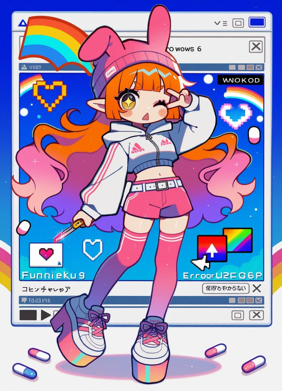 adidas, animal ear headwear, rabbit ears, fake animal ears, pink beanie, hood down, white jacket, cropped jacket, long sleeves, midriff, navel, pink shorts, white belt, pink thighhighs, white sneakers, platform shoes, high heels