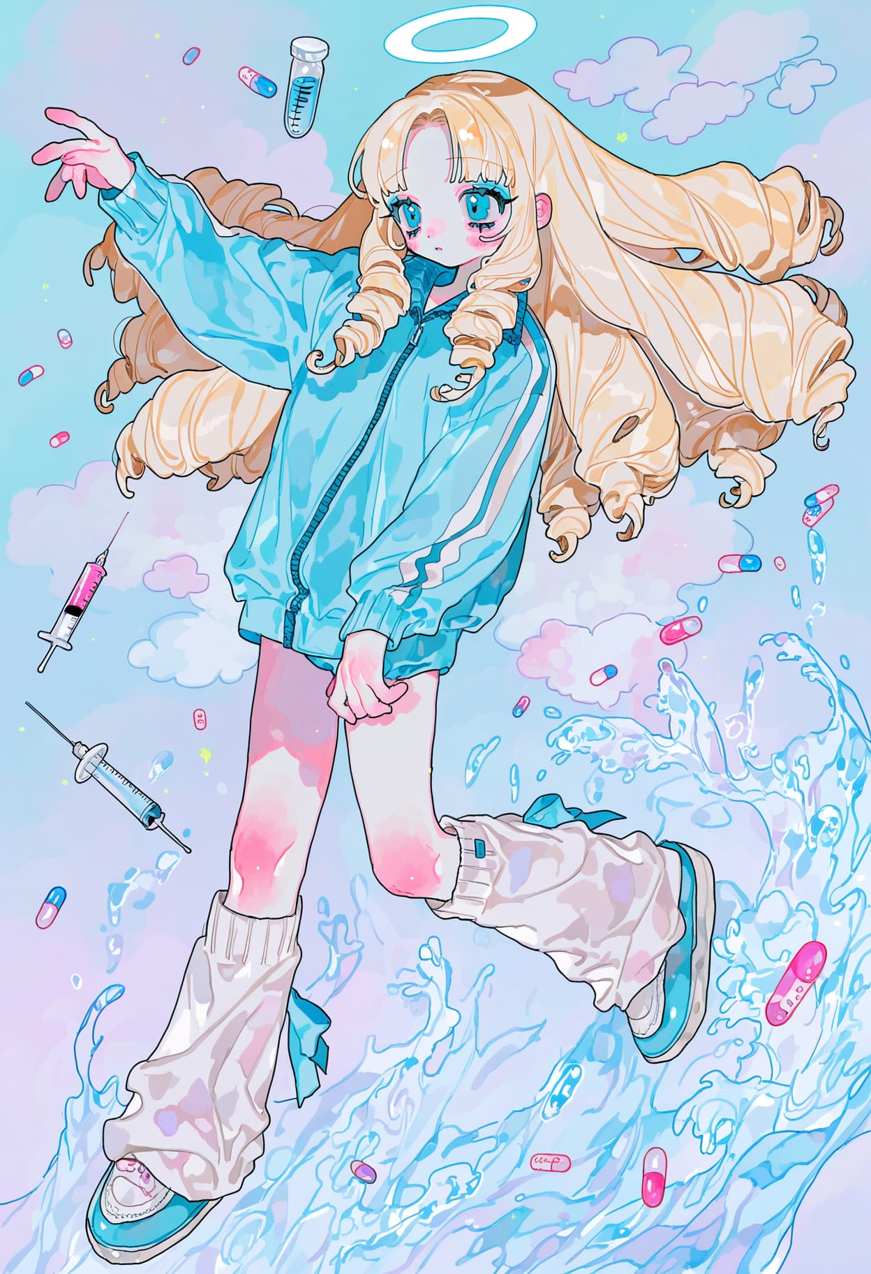 Tenshi Kaiwai — это японская эстетика и модный стиль, основанный на сочетании светло-голубого и белого цвета. В нём часто используется образ ангела (angel), воды (water), облаков (clouds), таблеток (pills), шприцев (syringes) и технологий (technology).
