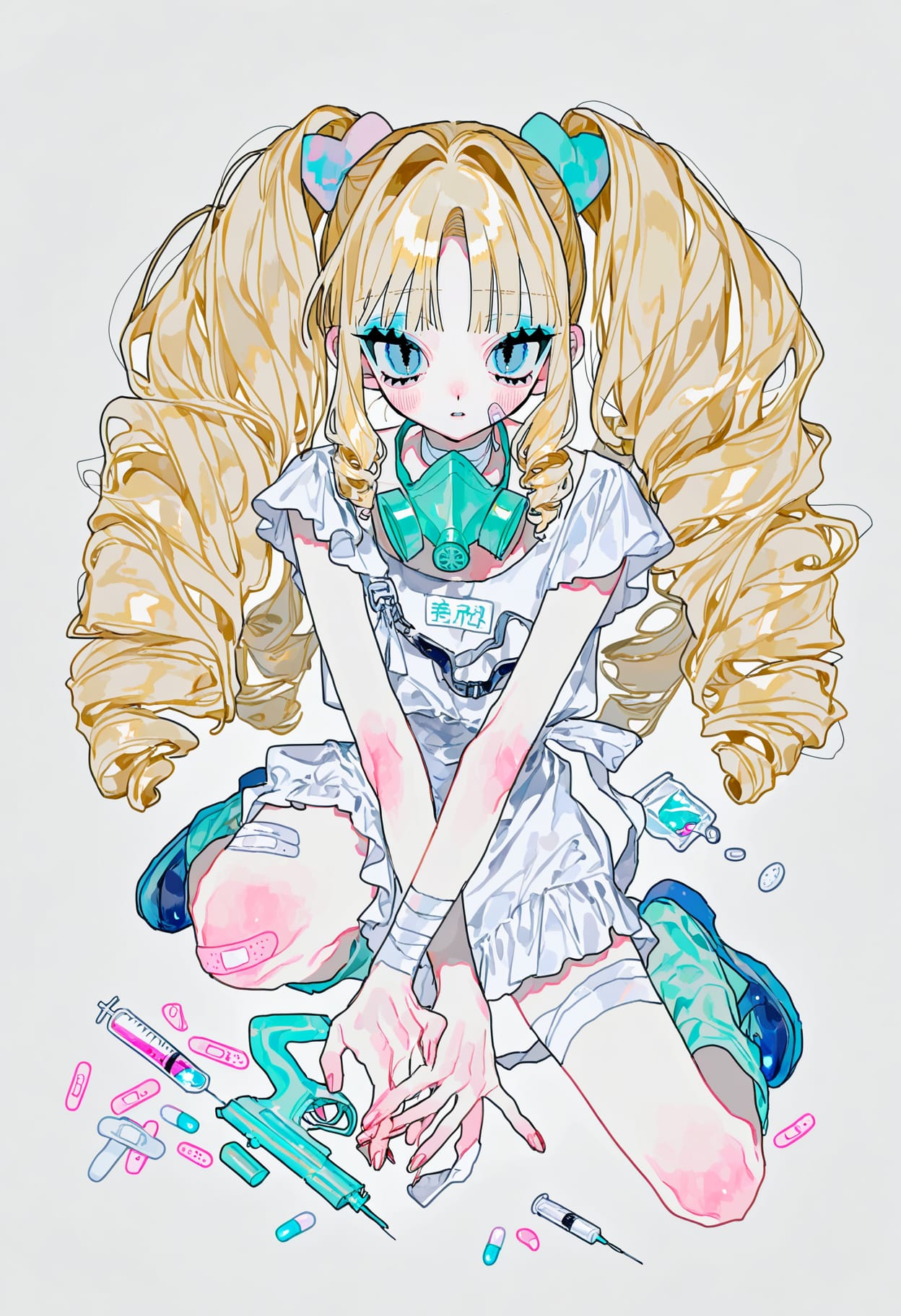 Из-за разнообразия эстетики, и для полной корректности тега я использовала его вместе с gurokawa, bandages, bandaids, gas mask, pastel colors, pastel theme.