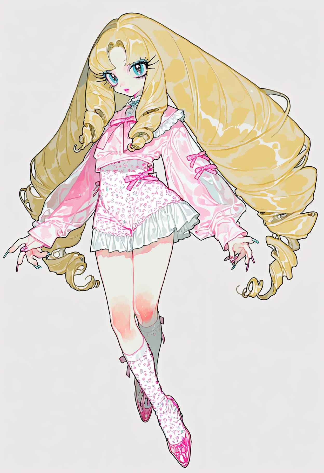 Hime gyaru — мягкая, более пастельная версия гяру, именно в этом подстиле гяру чаще всего встречаются бантики (bows), кружева (lace) и оборки (frills).