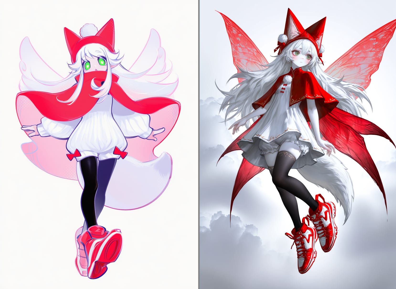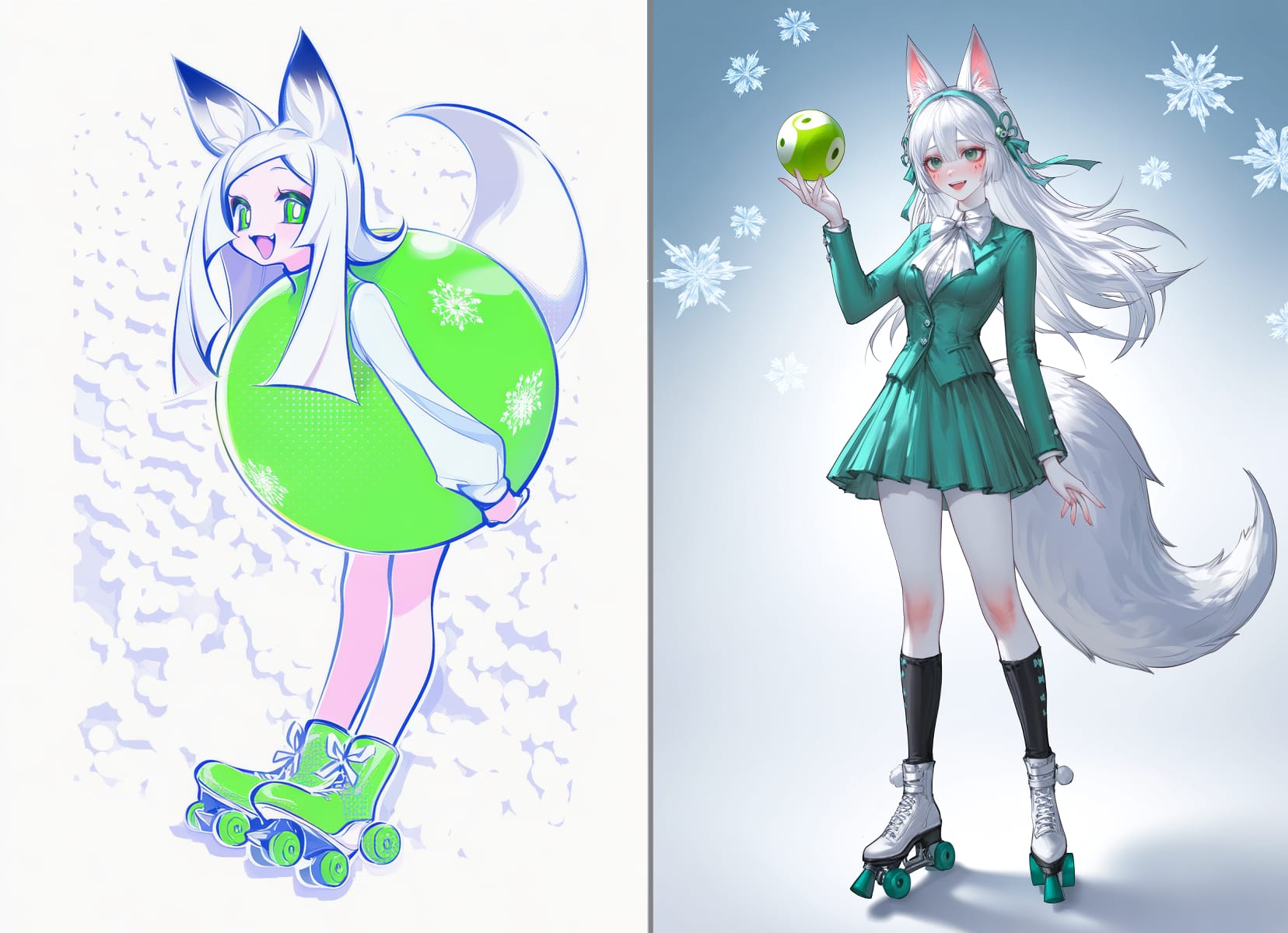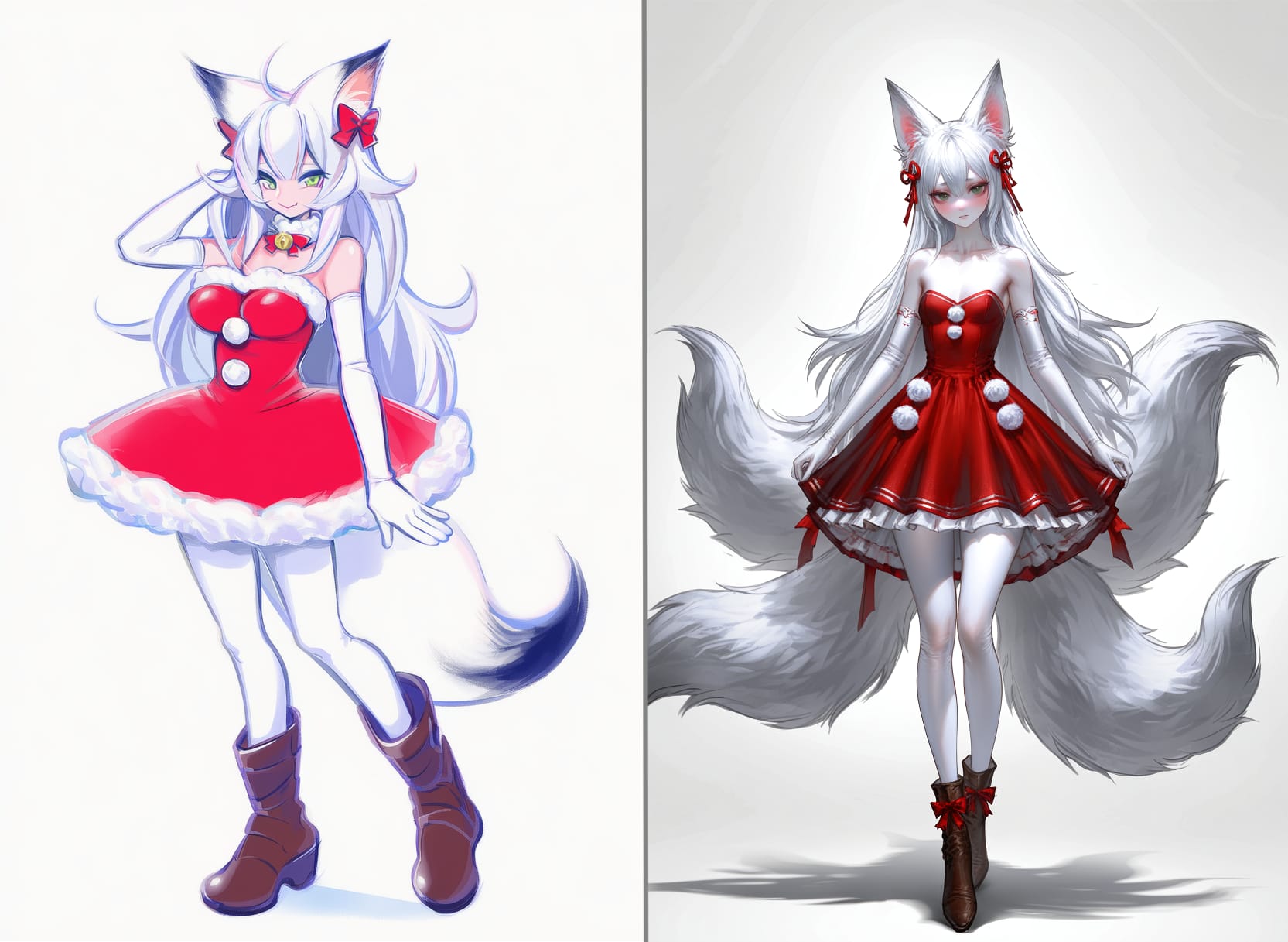 snow crown, light blue cloak, translucent cloak, snowflakes on the cloak, shoulder pads, white jacket, fitted jacket, white pants, classic pants, black shoesred dress, strapless dress, white pom-poms on a dress, short dress, white gloves, long gloves, white tights, brown boots, high boots, red bows in the hair, full skirt, fitted at the waist, white frill on a skirtwhite bodysuit, stripes on bodysuit, red stripes, santa hat, long hat, pom-pom with hat, white cuffs, puffy cuffs, barefootwhite dress, short dress, white shorts, fluffy shorts, red bows on shorts, fairy wings, red wings, red hat, cone-shaped hat, red bolero, red capelet, pom-pom on hat, black stockings, red shoes, oversized shoes, speed shoes light green dress, strapless dress, black corset, dark green skirt, skirt made of spruce branches, spruce toys on skirt, long skirt, cutout on leg on the skirt, red bows, new year's toys on skirt, no sleeves, red bow on the neck, star hat, red hatwhite dress, pleated skirt, mini skirt, leggings, shaggy leggings, white bolero, white hat, witch hat, snowflake hat, black tights, black shoesblack pants, white shirt, puff sleeves, lace shirt, red hat, mushroom hat, fly agaric hat, red shoes, mario shoesclown collar, white collar, cap, red cap, pompom on the cap, costume, clown costume, two colored costume (red and blue), white buttons on a suitred coat, open coat, silver ornament on coat, white t-shirt, red boxer shorts, white cat print on shorts, white lush beard, beard with ties, red hat, new year's hat, fur on a hat, pompom on a hat, red bag over the shoulder, holding the bag with his hand, slippers, red slippers, deer slippersdeer antlers, antlers on a rim, red pompom on the nose, red dress, dress with straps, mini dress, fluffy skirt, fitted waist dress, black buttons on the dress, white fur on the skirt, green checkered skirt, red stockings, red boots, boots with green fur, white laces, red gloves, high gloveswhite face, black eyeshadow, eyeshadow around the eyes, (carrot nose, snowman nose:1.5), red lips, grey scarf, white dress, long sleeves, black buttons, black tights, white socks, black sneakers, black hatgreen round ball costume, white snowflakes on the ball, white bow on the ball, green suit, open face, smiling, green roller skatescosplay mushroom, hat mushroom, white blouse,flared sleeves,loose blouse,high collar,cropped blouse,short top,flowy sleeves,high-waisted blouse, black underbust corset, red cycling shorts, striped stockings (white and red), black boots
