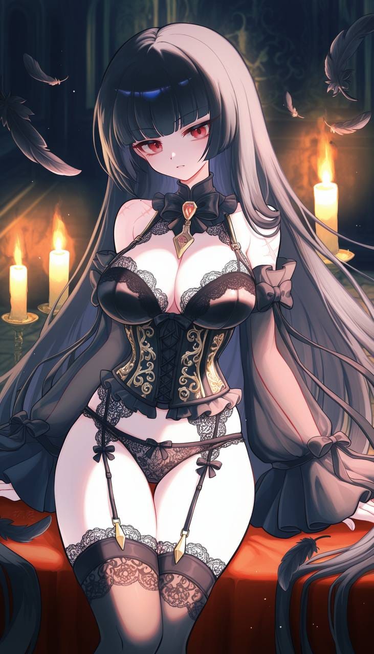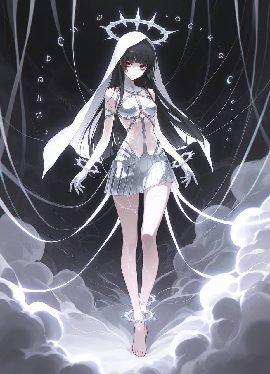 sleeveless high-neck black blouse, tight fit, matte texture, black tactical pants with reinforced knees and small straps, heavy black combat boots with thick soles,black fingerless gloves, minimal accessories, metal chain on belt, subtle metal details on boots and pantslong dress, high collar light blue, long sleeves light blue, fitted bodice light blue, flared skirt white, skirt front slit white, skirt two layers, belt silver with pendants, ruffles on sleeves white, straps on shoulders light blue, knee-high boots silver with metal buckles, fingerless gloves white, metallic embroidery silver, victorian era, red bra with silver snowflake embroidery, large satin bow, semi-transparent red babydoll, thin lace trim, red panties with small bow, red thigh-high stockings, white fur cuffs on wrists, white fur choker,fur stole, soft gradient transparency on fabric, festive detailspink santa hat, short coat, pink-lilac coat, white fluffy fur trim, big bow on collar, golden jingle bells, pastel snowflake sweater, pink-lilac layered skirt, fluffy underskirt, silver embroidery,white-pink overknee socks, pink nylon tights, ribbon bows on socks, white winter boots, fluffy trim boots, pom-pom laces, christmas accessories, gift-shaped bag, snowflake hairpins, bell earringscozy red christmas sweater with white reindeer pattern, hood with plush antlers, long sleeves, short red skirt, warm brown knitted tights(ornate red and gold outfit),butterfly-shaped chest piece with gemstone center,delicate golden chains and beads,jewelry on neck and arms,transparent flowing chiffon sleeves,layered skirt of red,rose,amber tones,soft shimmering fabric,detailed embroidery,gold leaf ornaments,vine-like patterns,intricate belt with jewels, serene expression, red maple treesgothic fantasy style, long flowing dress, deep black and crimson tones, corset bodice with golden embroidery, lace-up front, sheer chiffon sleeves, layered skirt with soft tulle and silk, subtle shimmer on fabric, lace trim, bat and moon patterns on hem, small ruby brooch at neckline, delicate choker with gem, golden waist chain with tiny charms, intricate lace gloves, thigh-high stockings with ornate lace tops, heeled boots with ribbons, refined and mysterious design, high-quality detailed clothing texturefuturistic ritual outfit, elegant surreal design, translucent layered bodysuit with glowing patterns resembling constellations, long trailing ribbons floating like smoke, high collar made of glass-like material, asymmetrical metallic skirt with fragments of mirrored plates, gemstone veins running through fabric, delicate harness of silver threads wrapping around torso, gloves with tiny embedded runes, crystalline ornaments on hips and shoulders, barefoot with luminous ankle rings, soft white veil attached to metallic halocute cozy outfit, pink corset top with white fur trim, matching short pink skirt with white fluffy hem, soft white plush jacket with long sleeves and big hood shaped like bunny ears, pink fluffy gaiters, small fluffy handbag with silver chain, kawaii fashion, detailed clothing, realistic textures, delicate designcyber lolita outfit, short holographic skirt in pink and violet tones, glowing lilac lace, metallic corset with rose-pink neon lines, transparent sleeves with fiberoptic glow, holographic ribbons and small data charms, glowing butterfly pendant, thigh-high stockings with pink light patterns, white platform boots with violet neon soles, soft dreamy cyber aesthetic, detailed and etherealcyber lolita outfit, futuristic victorian design, short layered black skirt with golden neon lace trim, metallic black corset with gold glowing lines, transparent puff sleeves with subtle gold shimmer, chrome buckles and gear ornaments, black choker with amber holographic gem, golden fiberoptic ribbons, thigh-high stockings with gold circuits, platform boots with black steel plates, elegant dark and regal style, detailed and luxurious clothing, White wedding dress, off-shoulder lace bodice, fitted waist, long flowing layered skirt, tulle and satin fabric, intricate embroidery with floral patterns, delicate lace trim, pearl and crystal decorations, long cathedral veil with lace edges, flower crown with white roses and greenery, sparkling jewelry: pearl necklace, earrings, subtle tiara, highly detailed, harmony, flowing fabricelegant luxury lingerie set, detailed lace corset with floral embroidery (ivory white, blush pink), sheer silk panties with ribbons, matching garter belt, translucent chiffon peignoir with long flowing sleeves, floor-length, trimmed with white ostrich feathers, satin waist ribbon bow, soft pastel tones (ivory, pearl, blush), subtle gemstone accents, high-quality illustration, delicate fabrics,elegant gothic luxury lingerie set, detailed black lace corset with golden embroidery, sheer black silk panties with thin satin ribbons, matching garter belt, translucent black chiffon peignoir with long flowing sleeves, floor-length, trimmed with soft black feathers, gold satin waist ribbon tied in a bow, subtle gemstone accents (amber or topaz), warm candlelight atmosphere, high-quality illustration, intricate lace texturehalloween-inspired business suit, extremely large dramatic oversized collar, stiff and structured, extending far over shoulders and chest, covered with black spider web pattern, main focus of the outfit, fitted blazer made of slightly sheer fabric, elegant and airy, dark black and deep purple palette, tailored pants or pencil skirt, subtle web-like embroidery on edges, tiny decorative spiders on collar and cuffs,oversized collar as central featurelace bodysuit, black bodysuit, revealing outfit, translucent body, bodysuit with short shorts, sleeveless bodysuit, full lace bodysuit, open chest, lace in the shape of a spider web, translucent outfit, erotic outfit, lace stockings, black long veil, black tiara, black short glovespunk gothic spiked leather outfit, black leather bra covered with large silver spikes and chains, m