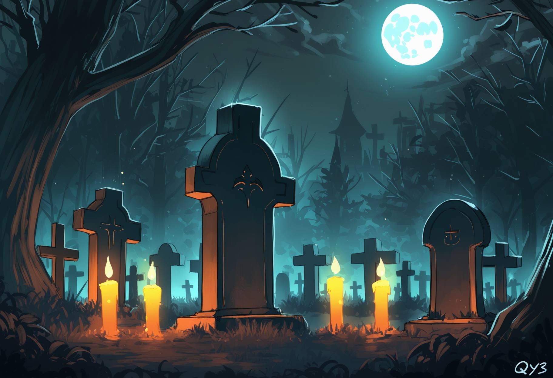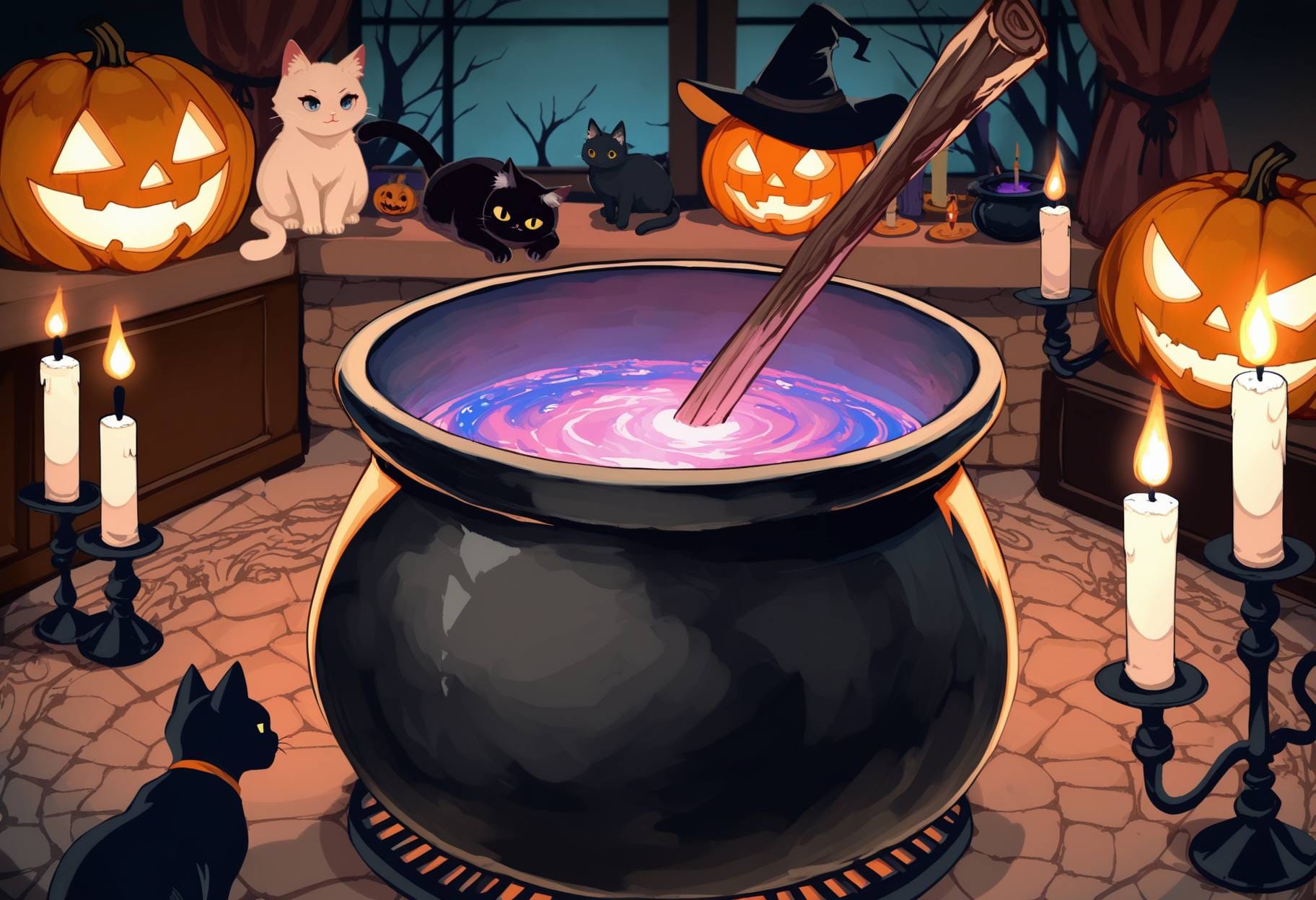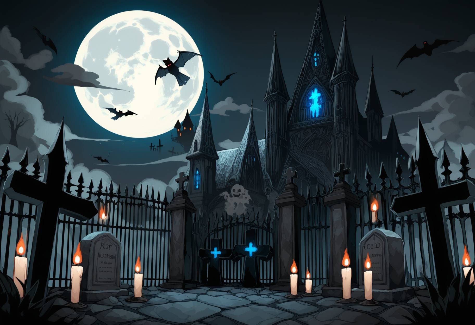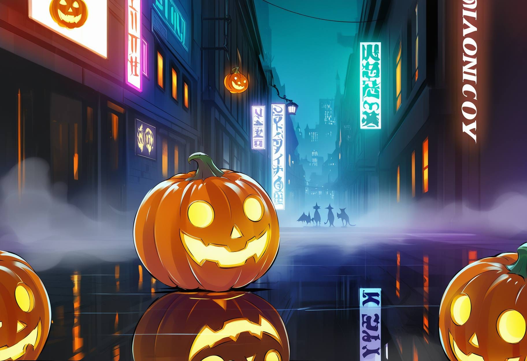 halloween background, victorian street, gas lanterns, brick houses, foggy night, pumpkins by doors, vintage spooky charmhalloween background, ancient stone ruins, glowing runes, vines, soft fog, magical purple light, mysterious fantasy atmospherehalloween background, old wooden farmhouse, broken windows, dry cornfield, carved pumpkins, pale moonlight, creepy silencehalloween background, graveyard under full moon, glowing candles, misty air, dark trees, calm eerie nighthalloween background, modern city street, glowing jack-o’-lanterns, neon signs, fog, reflections on wet asphalt, spooky festive moodhalloween background, haunted castle interior, moonlight, spider webs, candles, red curtains, gothic moodhalloween background, witch cottage interior, potions, candles, black cat, cauldron, warm light, rustic magic atmosphere, halloween background, enchanted autumn forest, glowing pumpkins among the trees, magical fireflies, faint mist, moonlight shining through branches, ancient stone ruins covered with ivy, soft sparkles in the air, warm gold and cool violet tones, mysterious yet beautiful atmosphere, cinematic lighting, highly detailed fantasy background,halloween background, dark gothic cemetery, old stone tombs and crosses, iron fence, full moon glowing behind clouds, black crows flying, candles flickering near graves, mist covering the ground, cold blue and silver tones, spooky atmosphere, detailed gothic architecture, cinematic shadows, fantasy style, highly detailed background, halloween background, cozy spooky village, small wooden houses with candlelight windows, pumpkins on doorsteps, lanterns hanging on fences, full moon in the cloudy sky, light fog, fallen leaves, warm orange and brown tones, autumn night, detailed, cinematic lighting, fantasy style, soft atmosphere, highly detailed background