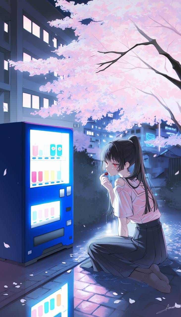 winter street, lots of snow, snowfall, house decorated with christmas lights, in the background, new year's atmosphere,pale blue sky, ((a lot of dynamic sakura petals)), dynamic, japanese temple, sakura, sakura petals, light wind, delicate composition,pink theme,standing in a room surrounded by stacks of retro crt televisions, glowing neon lights in purple and pink, glossy floor reflecting the lights, vaporwave aesthetic, the girl is in the center of the room, clearly outside the tv screens, relaxed pose, ambient lighting, dreamy atmosphere, soft shadows, detailed background, cinematic perspective, 80s retro-futuristic vibe, НЕГАТИВ: inside tv, girl inside screen, blurry, distorted, cropped, unrealistic lighting(((night street in japan))),quiet empty urban scene, glowing vending machine near cherry blossom tree branches with soft white petals, gentle blue lighting, apartment building with balconies in background, wet pavement reflecting light,peaceful, cinematic atmosphere, moody soft light, realistic photography, detailed environment, calm night city aesthetic, petals on the ground, neon reflections, ultra-detailed, 4k, cinematic lighting, long bright school corridor, large windows with white curtains, sunlight streaming in, (((entire floor completely covered in soft green grass and dense blue wildflowers))), (((no tiles or ground visible))), (((flowers growing naturally across the whole corridor))), dreamy peaceful atmosphere, soft glow at the end of the hallway, surreal mix of nature and school interior,dark environment, dark forest, weak flashlight, dark branches, big moon, gloom, fog, gloomy atmosphere, focus on the background,