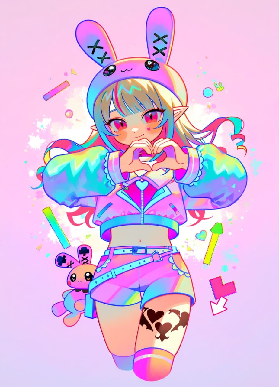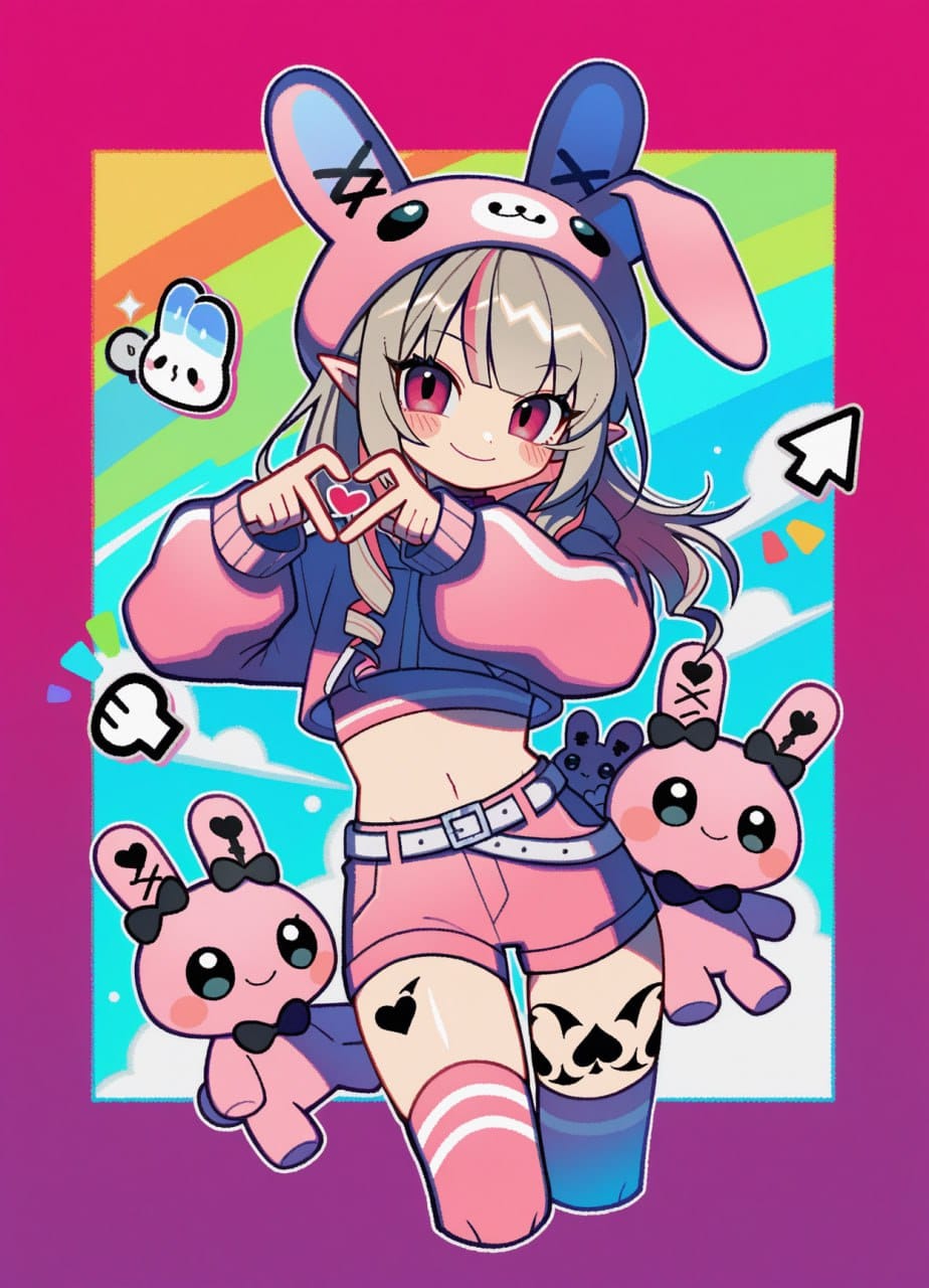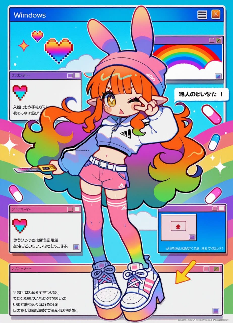 (furigana, fake transparency, windows (computing), error message, pixel stickers, rainbow, pixel heart, cursor, pill:1.4)