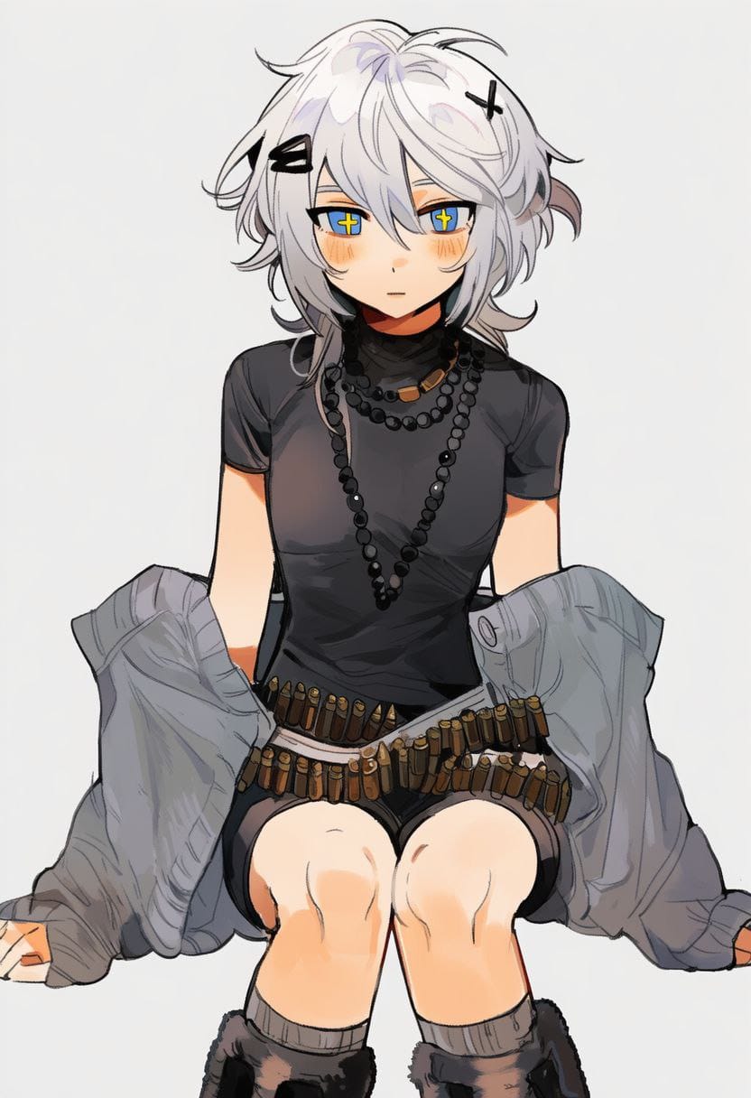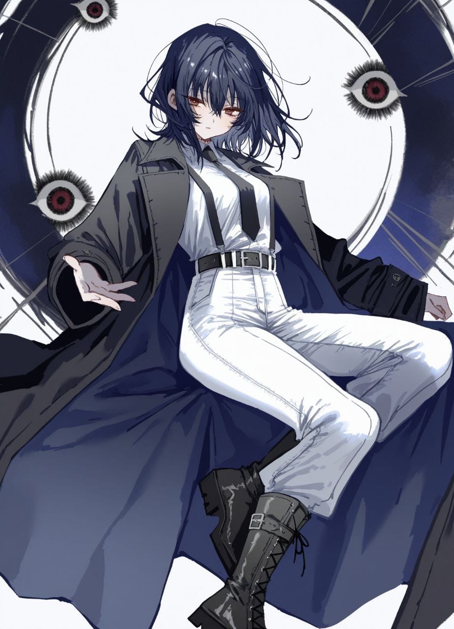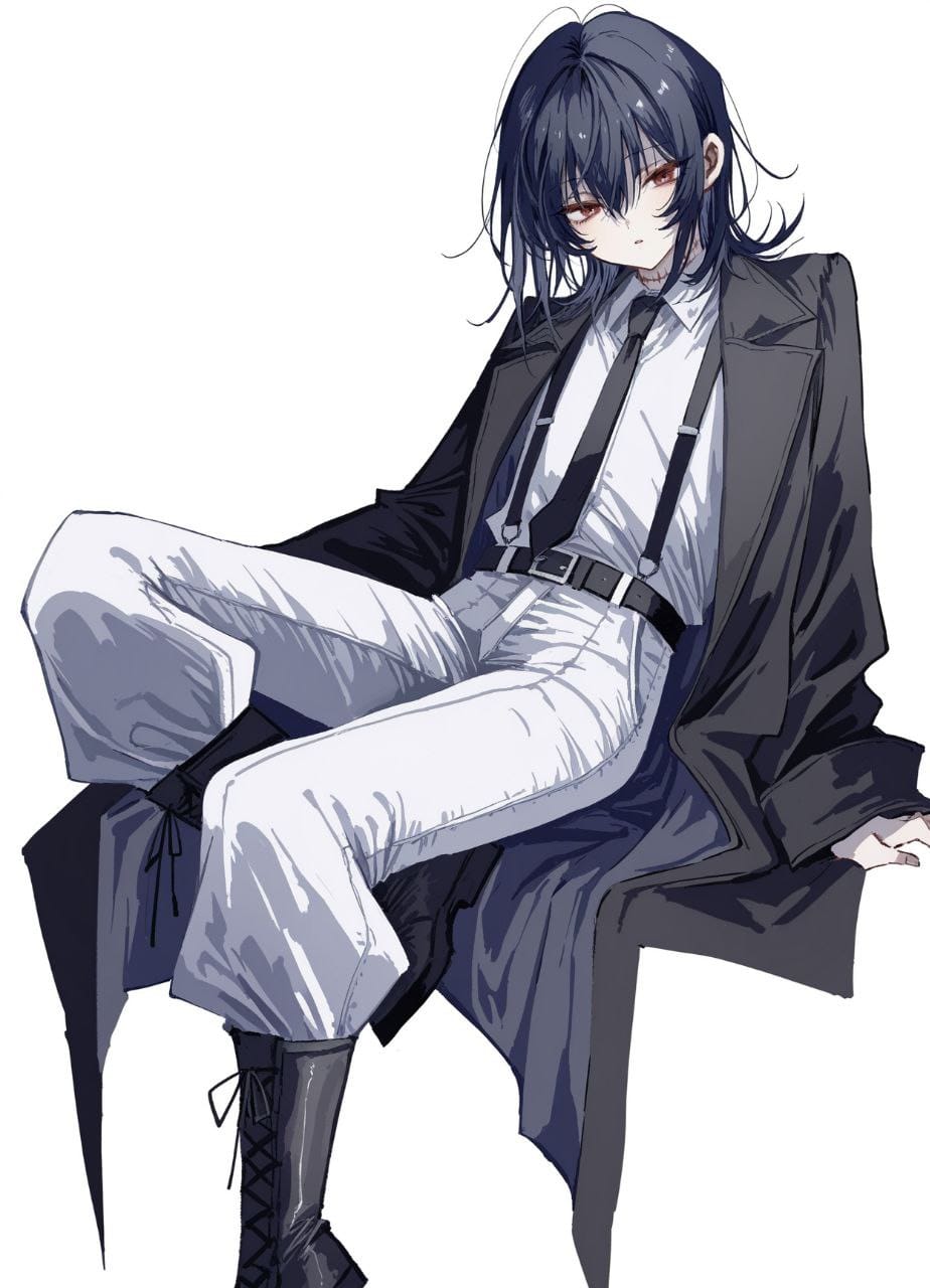 belt, black belt, black jacket, black pants, black shirt, necklace, jacket, jewelry, long sleeves, necklace, unbuttoned clothes, unbuttoned jacket, pants, printed shirt, shirt, skeleton print, dyed hair, hip belt, virtual youtuber, zipperblack panties, cowboy hat, cropped top, denim, denim shorts, hat, micro shorts, unbuttoned fly, panties, plaid, plaid shirt, red shirt, shirt, unbuttoned shirt, black bra, short shorts, shorts, rolled-up sleeves, bare stomach, tied shirt, underwear, leather boots, brown boots, lace-up boots, flat bootscroc top,red croc top,high-neck croc top,fitted croc top,shorts,red shorts,shorts with bow,fitted shorts,short shorts,red bandages on legs,red bandages on arms,beach hat,black boots,lace-up boots,black tie,white shirt,white suspenders,black belt,white pants,wide pants,black coat,long coat,