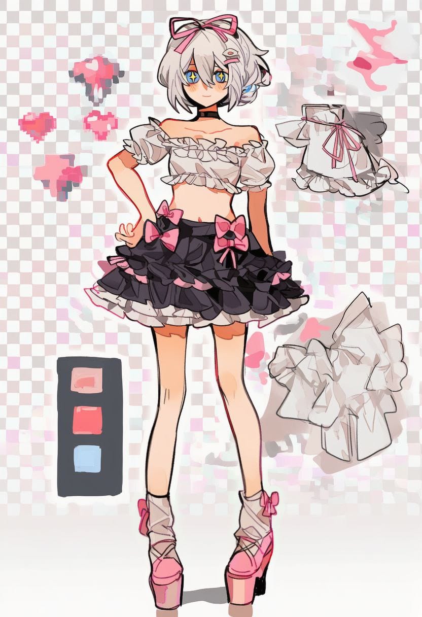 black velvet dress, short skirt, fitted skirt, standing collar, red ribbon lacing, long sleeves, lace ties, short fitted dress, black long socks, elegant fabric, details, white belts on hips, striped long socks, magenta sneakers, cat ear headphones, black cat ear headphonesbutterfly, butterfly print, necklace, dress, flower dress, floral print, flower, flower brooch, flower necklace, ruffle dress, ruffle sleeves, ruffles, layered dress, long dress, necklace, off shoulder dress, petals, pink dress, pink flower, pink sleeves, short sleeves, glitter, strapless dress, wide sleeves,blush, ankle ribbon, purple bow, purple shoes, purple ribbon, purple skirt, bow, detachable sleeves, dress, bow on dress, floral print, frilly dress, frilly sleeves, ruffles, high-waisted skirt, layered dress, ribbon on leg, lolita fashion, long sleeves, tights, puffy long sleeves, puffy sleeves, purple shoes, ribbon, shirt, skirt, sleeves above the wrists, white tights, white sleeves, white leather,pink and blue dress, pastel dress, pink collar with bell, blue bow with paw print on chest, white ruffles, blue buttons on waist, ruffles, dreamy aesthetic, puffy skirt, colorful leg warmers, cute white shoes, white belt on hip, fluffy pink bow on head, maid apron, white straps on arms, multicolored striped gloves, jelly cat tail, jelly cat earssheep costume, sheep dress, fluffy costume, white costume, large black bow on chest, black tights, fluffy hood, sheep ears on hood, loose dress, sheep tail, hoof shoes, white fluff on shoes, long sleeves, fluffy sleeves, black bow on tail, short dressanimal ears, animal stockings, animal ears, animal hands, bare hands, bare shoulders, bra, breasts, cat cutout, cat stockings, cat underwear, cat tail, choker, cleavage, cutout, clothing cutout, cat ears, ruffled bra, ruffles, bell on neck, meme style outfit, bell on neck, gloves with paws, paw print, shoes with paws, pink choker, pink shorts, short shorts, shorts, tail, stockings, underwear, white bra, white gloves, white stockingscorset, dress, ruffles, accessories, long sleeves, veil, wedding dress, white dress, shirt,animal ears,animal hood,brown socks,fake animal ears,fake tail,hood,hood up,long sleeves,pajamas,pompom(clothing),rabbit ears, rabbit hood,rabbit tail,socks,tailshort loose-fitting snow-white tunic dress with wide sleeves, brown leather belt, gold chain necklace, gold chain thrown over chest, gold cuffs on wrists, brown leather sandals, armbandsankle ribbon, blue bow, blue ribbon, bow, dress, bow on dress, bow on shoes, frilly dress, frilly socks, frills, layered dress, leg ribbon, long sleeves, pastel colors, pink bow, pink shoes, pink theme, puffy long sleeves, puff sleeves, ribbon, socks, tachi-e, white dress, white socks,bag, black shoes, bow, bow tie, brown bag, brown shoes, dress, floral print, frilly dress, frill, hair bow, hair accessory, small bag, long dress, long sleeves, pink dress, pom-pom (clothing), pom-pom hair accessory, puffed long sleeves, puffed sleeves, red bow, red bow tie, red ribbon, ribbon, shirt, shoes, shoulder bag, socks, white shirt, white socksblack choker,black stockings, black dress, short dress, black gloves, cleavage, cross-laced slit, sideless outfit,elbow gloves, fingerless gloves, halter dress,bare shoulders, cutouts, long sleeves, fluffy long sleeves, open shoulders, sleeves that extend beyond the wrists, one standing, white dresschinese clothes, dragon pattern, dress, frills, lolita fashion, long dress, sleeves above wrist, pink dress, black and pink dress,bare shoulder, blue dress, bubble, cleavage, cleavage, cutout, dress, fins, glowing, gradient hosiery, halter dress, halter, jellyfish, tights, platform shoes, sheer skirt, pumps, solo, toeless shoes, blue shoesblack underwear, black stockings, stocking belt, bare stomach, navel, underwear, sleeveless, high-necked sleeveless, suspenders, sleeveless sweater, stockings, traditional materials, turtleneck, high-necked sweater, underwearblue dress, corset, cross, necklace with cross, dated, full body, latin cross, long dress, necklace, puffed sleeves,bikini, ribbon top, black ribbon, thong, white thong, lace thong, white long boots, belt on hip, black armbands, choker, white choker, spiked choker,bag, black choker, blue skirt, choker, cross-laced clothing, denim fabric, dress, handbag, gaiters, short lantern sleeves, lantern sleeves, shirt, short sleeves, shoulder bag, skirt, lantern skirt, white shirt,black skirt, blouse, necklace, ruffled shirt, ruffled skirt, ruffles, heart, heart-shaped necklace, high-waisted skirt, invisibility, jirai kei, long sleeves, white shirtbow, bra, pink bra, breasts, choker, cross, lace trim bra, lace trim skirt, pink skirt, lace trim, heart, invisibility, jewelry, lace, lace trim, lingerie, mini skirt, necklace,bare shoulders, dress, jewelry, long dress, long sleeves, necklace, ring, standing, white dress, form-fitting dress, white corset, white theme, white outfit, white shirt,bandaged leg,bandages,black necklace,black dress,black shoes,black headdress,black nails,necklace,collar,dress,ruffles,full body,gothic fashion,gothic lolita,hat,indoor,lolita fashion,long sleeves,nail polish,puff sleeves,short sleeves,web pattern,witch,witch hat,white button-up shirt, short sleeves, unbuttoned at waist, black tie, black belt, black baggy pants, pockets, straps, knee chain, black platform boots, black fingerless glove, street fashion,bun cover, chinese dress, chinese clothes, detachable sleeves, dress, fishnet tights, mesh, floral print, ruffled sleeves, hair bun, jiangshi, lolita fashion, long sleeves, ofuda, tights, patterned clothing, pink dress, short dress, mascot,black and white, nun costume, cross pendant, form-fitting dress, cosplay costume, long flowing skirt, high side slit, transparent black fabric, silver rivets, black bodice, white collar, white cuffs, high neckline, long sleeves, small black horns, nun veil, pointed tips, gothic style, sharp style,beige t-shirt, white sneakers, brown denim jumpsu