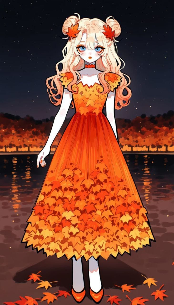 leafy dress,orange leaves dress,long dress