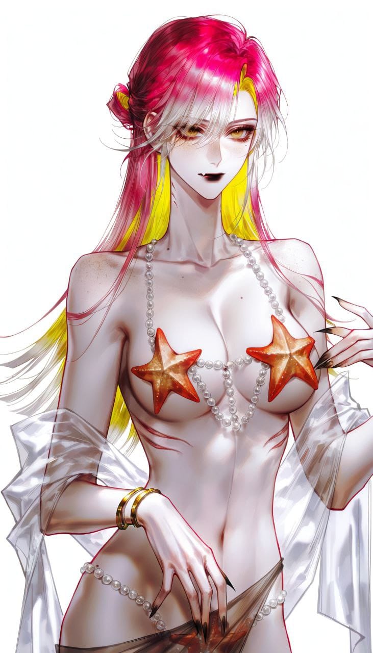 (starfish bikini,starfish over chest:1.2),pearl bikini strap