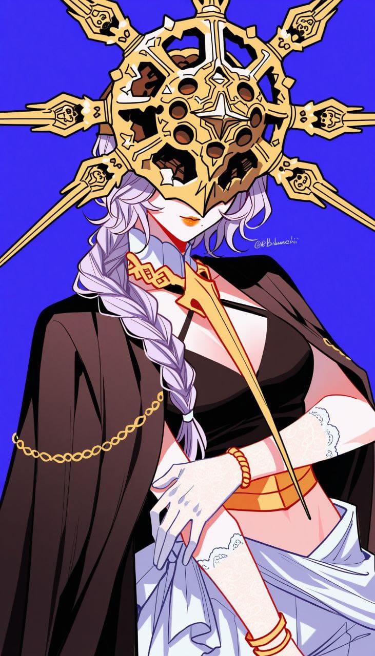 no eyes,covered eyes,(dark sun gwyndolin mask:1.4),gold headwear,spiked mask