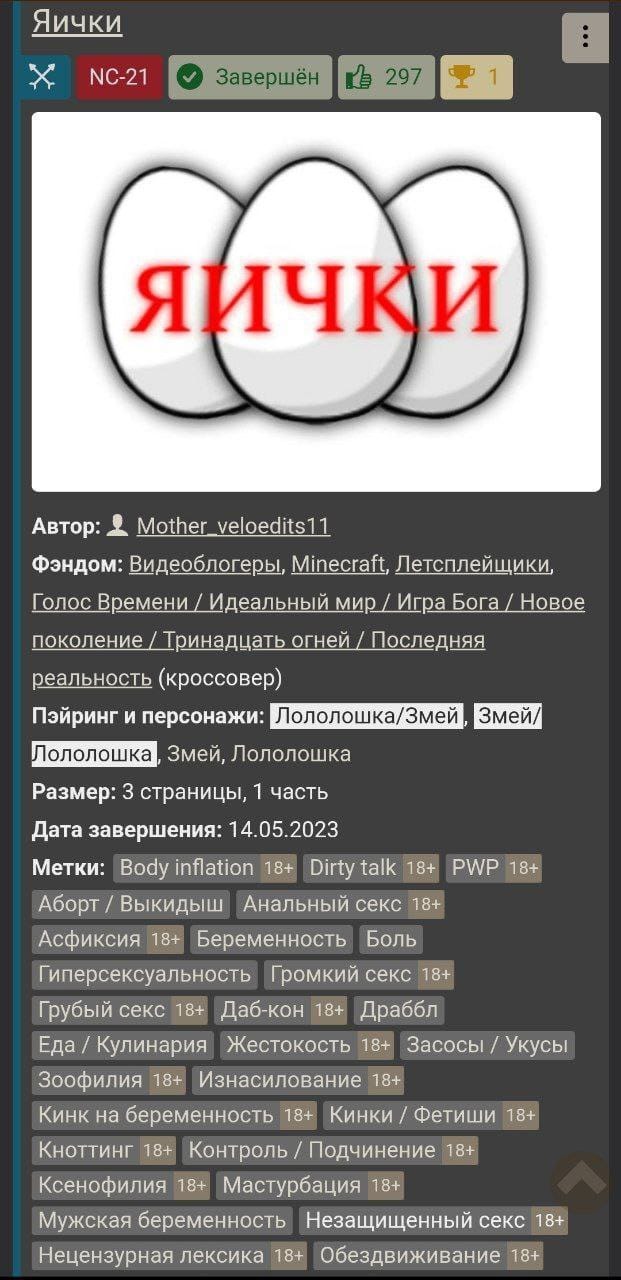 Сюжет кратко: Змей из ГВ выебал Лололошку, отложив в него ЯЙЦА, ЗАСТАВИВ СОЖРАТЬ ИХ ЛОЛОЛОШКУ. ЭТО НЕ ТОЛЬКО УЖАС ЧИТАТЕЛЯ, НО И СЕРДЕЧНЫЙ ИНСУЛЬТ УЧИТЕЛЯ БИОЛОГИИ, ВЕДЬ КАКИЕ ЯЙЦА У ЗМЕИ МУЖСКОГО ПОЛА. Каждый раз, вдумываясь в сюжеты фанфиков, то с каждой секундой я натурально тупею и деградирую... Зато с вами, мои дорогие читатели, так что мы продолжаем дальше идти по пиздецу!